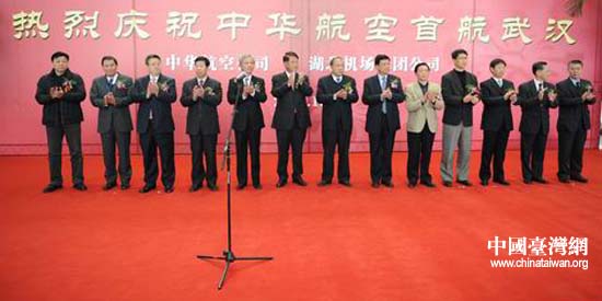 臺(tái)灣華航集團(tuán)總經(jīng)理孫洪祥特地搭乘首航班機(jī)抵達(dá)武漢,參加在武漢天河機(jī)場(chǎng)舉辦的首航儀式。湖北省政協(xié)副主席陳春林、湖北省臺(tái)辦主任劉凱春及其他相關(guān)部門的負(fù)責(zé)人出席了首航儀式。