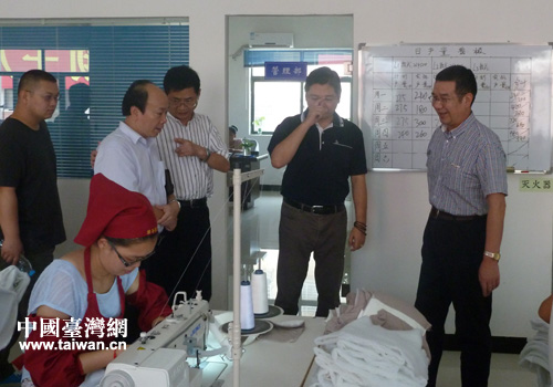 湖北省臺(tái)辦副主任涂陽斌(右一)到湖北雅姿服飾調(diào)研。(襄陽市臺(tái)辦 崔有理 攝)