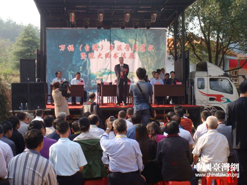中國臺灣網11月2日湖南寧遠消息 日前,“萬福(臺灣)書法學院落成典禮暨陳大絡教授書法展”在風光如畫的九嶷山下,寧遠縣桃花巖生態度假園隆重舉行。萬福(臺灣)書法學院院長陳大絡、市縣領導及各級友人共500余人參加典禮。