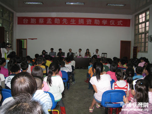 中國臺灣網5月31日撫州消息 5月30日,六一兒童節來臨之際,臺灣亞煜國際集團總經理、江西省贛臺交流服務中心理事長蔡孟勛先生,在江西省臺辦副主任簡立明、市臺辦主任廖燕、黎川縣副縣長何明的陪同下來到黎川縣宏村鎮中心小學,為20名貧困學生送來書包、文具、運動服及一萬多元助學金。
