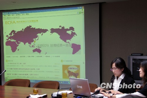 10月12日,為讓更多臺灣民眾了解當局推動洽簽“兩岸經濟合作架構協議(ECFA)”內涵,臺灣經濟主管部門在臺北宣布ECFA官網即日改版上線,詳細介紹ECFA帶來的經濟利益與因應相關可能沖擊的措施,并新增影音下載專區,讓民眾深入了解兩岸經貿合作。據悉,目前兩岸正加緊協商簽訂ECFA的前期準備工作。據臺灣經濟部門說,ECFA主要內容可能包括商品貿易(排除關稅和非關稅障礙)、早期收獲、服務貿易、投資保障、經濟合作,以及爭端解決機制等。中新社發 黃少華 攝