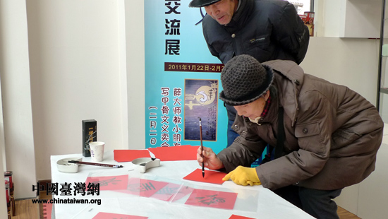 有興致的顧客也在民俗小店里揮毫為兔年討個好彩頭(中國臺灣網(wǎng) 李徽 攝)