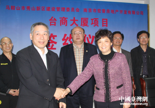 中國臺灣網(wǎng)5月3日馬鞍山消息 日前,由南京(臺灣)明木投資管理顧問有限公司和南京(臺灣)宏普房地產(chǎn)開發(fā)有限公司共同出資,馬鞍山市政府鼎力支持的馬鞍山臺商興業(yè)大廈在風(fēng)景秀麗的秀山新區(qū)舉行了正式的簽約儀式。秀山新區(qū)指揮長龔玉芝、南京(臺灣)宏普房地產(chǎn)開發(fā)有限公司董事長段津薪共同在項目書上簽字。