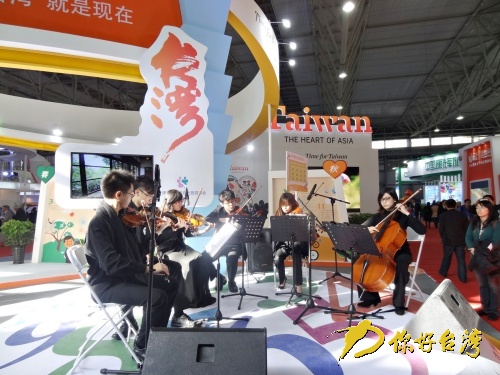 此次旅交會現場,臺灣館系以創新展攤設計手法,展現“臺灣觀光年歷”主題活動,及“臺灣好行”、“臺灣觀巴”等臺灣豐富多元的觀光資源,也充分表達臺灣推動團客優質行程及個人自由行兩大主軸的鮮明意象,參觀展覽的民眾均相當熱絡的向臺灣館服務人員索取資料,及咨詢臺灣旅游訊息;另臺灣館也結合臺灣參展代表團及表演團體,擴大營銷宣傳力度,還特地從臺灣邀請在地屢獲殊榮的“樂興之時”室內樂團在展場現場定時表演,帶來具有臺灣特色的名謠演奏,悠揚樂聲伴隨會場熱絡交流,將氣氛帶到最高點,深獲參觀民眾一致好評。