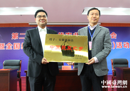 中國(guó)臺(tái)灣網(wǎng)11月21日安徽和縣消息 日前,由安徽馬鞍山市人民政府、南京市人民政府、安徽省臺(tái)辦等單位聯(lián)合舉辦的“第七屆中國(guó)和縣蔬菜博覽會(huì)暨第二屆皖臺(tái)現(xiàn)代農(nóng)業(yè)發(fā)展研討會(huì)”在安徽和縣隆重舉行。會(huì)上,和縣被中國(guó)蔬菜流通協(xié)會(huì)授予“中國(guó)蔬菜之鄉(xiāng)”的榮譽(yù)稱號(hào)。
