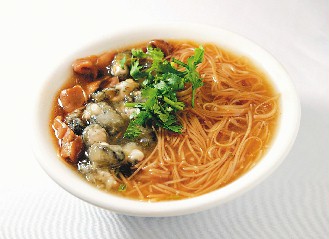 典故鄭成功攻打臺灣,在缺糧的情況下,士兵就地取材,以蚵仔、番薯粉混合煎成餅做糧食,后流傳為著名小吃。|