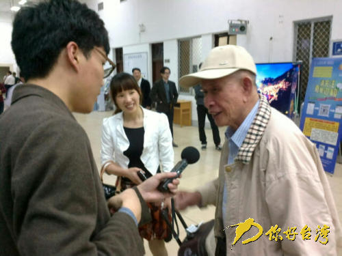 回鄉祭祖的臺灣鄉親正在接受記者采訪 (梁恒 攝)