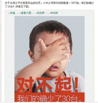 昨天,小米就此作出回應(yīng)。小米在其官微貼出一個(gè)賣萌的圖像并表示:“對(duì)不起,我們的確少了30臺(tái)!毙∶追Q臺(tái)灣公司在前三輪開放購(gòu)買網(wǎng)上公告總計(jì)28000臺(tái),而實(shí)際網(wǎng)上搶購(gòu)資格和發(fā)放F碼共計(jì)27970臺(tái)(9339+9492+7389+1750),確實(shí)比公告數(shù)少了30臺(tái)。隨后,臺(tái)灣小米公司也發(fā)出致歉聲明,并承諾修正開放購(gòu)買機(jī)制。