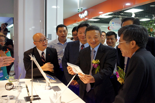 開(kāi)幕式結(jié)束后,與會(huì)嘉賓在臺(tái)灣貿(mào)易中心成都代表處首席代表呂寬永、百腦匯總裁蔡明賢等主辦方代表陪同下,參觀設(shè)在百腦匯一層的智慧生活館展區(qū),感受精湛的科技時(shí)尚。置身于動(dòng)感絢麗的環(huán)境中,人們仿佛進(jìn)入了“未來(lái)世界”。世界首創(chuàng)的投影虛擬感測(cè)鼠標(biāo)、3D裸視屏幕、曾獲IF大獎(jiǎng)和美國(guó)堤利威格玩具大獎(jiǎng)的“未來(lái)車(chē)”、立體光固化技術(shù)3D打印機(jī)等高科技產(chǎn)品吸引了無(wú)數(shù)成都市民的目光。