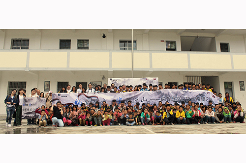 兩岸愛心人士與學校學生合影。