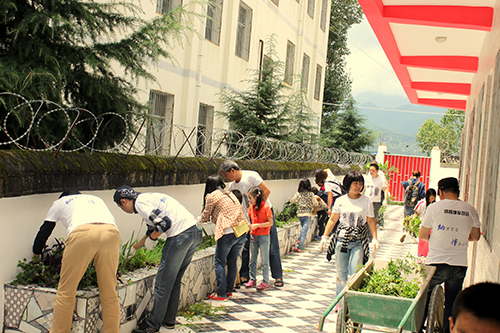愛心人士為學校修整花圃。