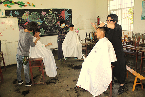 愛心人士為學校學生理發。