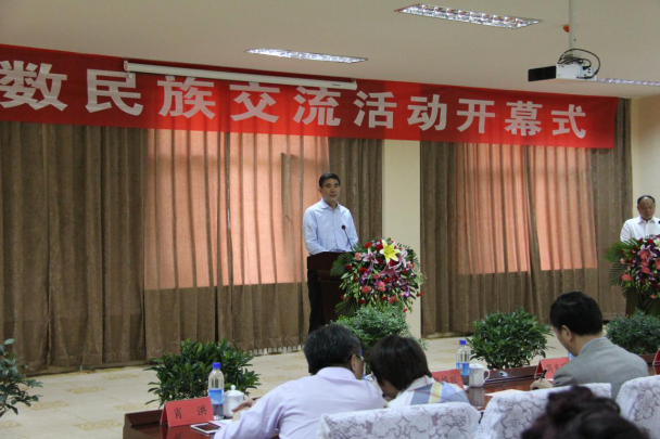 8月18日,青臺少數民族交流活動在西寧開幕。中央臺辦、國臺辦主任張志軍,青海省省長王建軍分別致辭,副省長楊逢春主持。