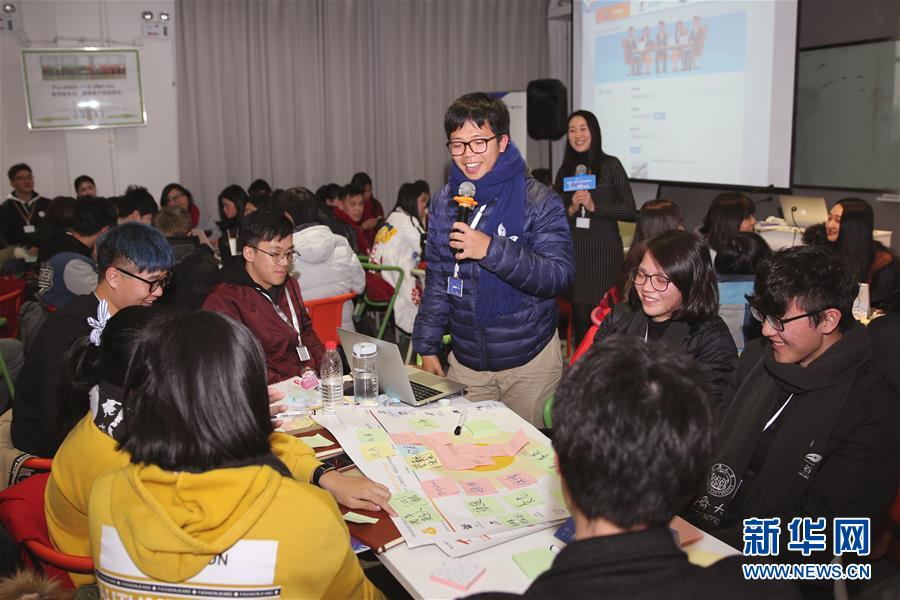 1月6日,在上海同濟大學,參加研習營的學生在工作坊活動中討論小組項目。當日,第二期同濟大學-紫荊谷創新創業研習營在同濟大學啟動。本屆研習營吸引來自海峽兩岸及香港澳門高校的70余名學子參加。