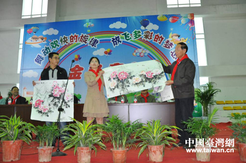中國(guó)臺(tái)灣網(wǎng)6月14日廣元消息 四川省廣元市臺(tái)辦結(jié)合“實(shí)現(xiàn)偉大中國(guó)夢(mèng)、建設(shè)美麗繁榮和諧四川”主題教育活動(dòng),在六一兒童節(jié)之際,組織臺(tái)屬書畫家7人到昭化區(qū)實(shí)驗(yàn)小學(xué),為該校700余名師生送去書畫作品50余幅,著作10本,并與老師同學(xué)進(jìn)行互動(dòng)交流,談理想、講修養(yǎng)、學(xué)技法、習(xí)書畫,書畫家們現(xiàn)場(chǎng)為老師同學(xué)作書畫100余幅,為實(shí)現(xiàn)偉大中國(guó)夢(mèng)鑄造了強(qiáng)大精神動(dòng)力。