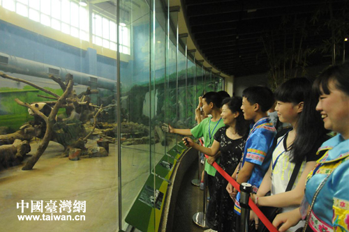 中國臺灣網7月19日臺北消息 7月18日,受臺灣民意代表高金素梅邀請在臺參訪交流的20名北川羌族地震災區學生們一行專程前往臺北木柵動物園,看望贈臺大熊貓“團團”“圓圓”和“圓仔”。