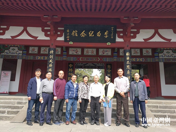 中國(guó)國(guó)民黨前副主席林政則一行在李白紀(jì)念館合影留念。(圖片來(lái)源:江油市臺(tái)辦)