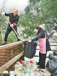 談及垃圾清運(yùn)問(wèn)題,彭資貿(mào)更是煩惱:“從1月6日開(kāi)始,我們村黨員干部帶領(lǐng)40多個(gè)村民上山撿拾垃圾,用背筐、垃圾袋等運(yùn)到山下,再由龍門(mén)山鎮(zhèn)1輛垃圾清運(yùn)車(chē)以及2臺(tái)拖拉機(jī)運(yùn)走;花了三天時(shí)間突擊清理了90%的垃圾。這幾天清理垃圾的人工費(fèi)和拖拉機(jī)租賃費(fèi),估計(jì)在6萬(wàn)元左右。”“這次是單獨(dú)的項(xiàng)目費(fèi),因?yàn)閮蓷l山路長(zhǎng)達(dá)十多公里,平時(shí)沒(méi)有錢(qián)請(qǐng)保潔員負(fù)責(zé)這么大范圍的保潔任務(wù)。”