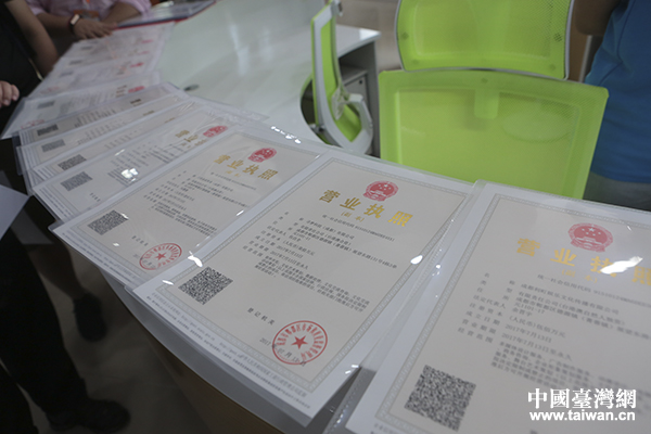 園區(qū)已為臺灣青年創(chuàng)業(yè)企業(yè)辦理好營業(yè)執(zhí)照。(中國臺灣網(wǎng) 于斯文 攝)