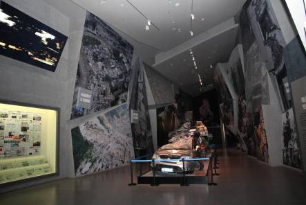主館(地震紀念館)陳展面積10748平方米,總展線1900米。分為“序廳、曠世災難破壞慘重、萬眾一心抗震救災、科學重建創造奇跡、偉大精神時代豐碑、結束語”六大板塊,于2013年5月面向社會公眾免費開放。