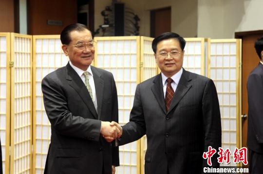 5月7日下午,湖北省代表團(tuán)來(lái)臺(tái)參訪抵達(dá)桃園機(jī)場(chǎng)。部分成員隨后即前往國(guó)民黨智庫(kù),會(huì)見(jiàn)中國(guó)國(guó)民黨榮譽(yù)主席連戰(zhàn)等。圖為中國(guó)國(guó)民黨榮譽(yù)主席連戰(zhàn)(左)會(huì)見(jiàn)湖北省省長(zhǎng)王國(guó)生。陳立宇 攝