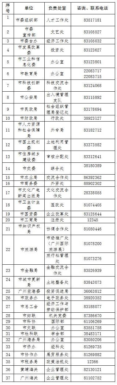 中國臺灣網1月17日廣州訊 為貫徹落實《關于進一步深化穗臺經濟社會文化交流合作的若干措施》(簡稱“廣州60條惠及臺胞措施”),暢通政府相關部門的聯絡渠道,方便廣大在穗臺企臺胞及時有效咨詢、辦理及享受相關政策舉措,現將“廣州60條惠及臺胞措施”涉及相關政府部門聯系方式公布如下: