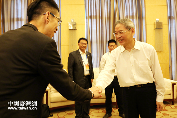 7月18日上午,全國(guó)人大常委會(huì)委員、海協(xié)會(huì)會(huì)長(zhǎng)張志軍會(huì)見(jiàn)參加第三屆海峽兩岸青年?yáng)|湖論壇的臺(tái)灣青年代表。(中國(guó)臺(tái)灣網(wǎng) 趙苗青 攝)