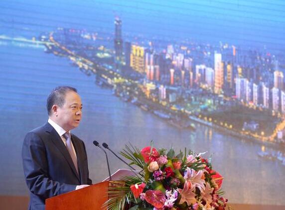 第十四屆湖北·武漢臺灣周的漢臺經貿合作大會,陳一新致辭。記者周超 攝