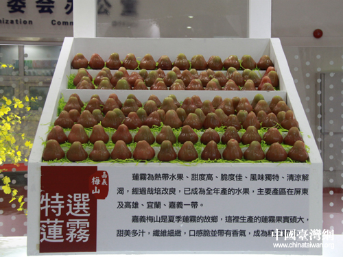 臺(tái)灣農(nóng)業(yè)精品館中展出的臺(tái)灣特色水果蓮霧。(中國(guó)臺(tái)灣網(wǎng) 宿靜 攝)