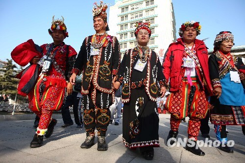 中新社北京十二月二十一日電 (記者 邢利宇) “臺(tái)灣少數(shù)民族歷史文化展”二十一日在北京民族文化宮隆重開幕。這是大陸首次舉辦比較全面、系統(tǒng)介紹臺(tái)灣少數(shù)民族文化和歷史的大型主題展覽。臺(tái)灣少數(shù)民族十四個(gè)族群的長老頭目等同時(shí)亮相開幕式,這也是臺(tái)灣少數(shù)民族代表首次成規(guī)模地來大陸參訪。