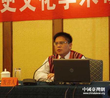 臺東大學南島文化研究所助理教授蔡志偉在研討會上發言(中國臺灣網 徐麗華 攝)