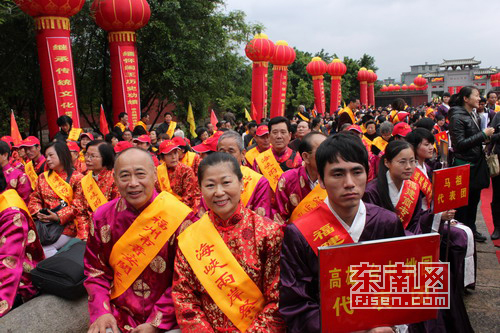 東南網4月23日訊(本網記者吳頌潔)今日上午,第二屆閩王文化節在福州隆重開幕。來自臺灣、閩南、溫州和福州的王氏宗親代表及各界人士共1700多人聚集晉安區新店鎮蓮花山下的閩王陵園,共同祭祀"開閩王"王審知。