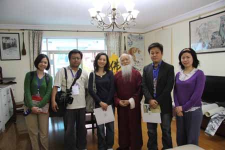 記者們驚訝于楊先生不僅作品傳承大千風(fēng)格,外形上白發(fā)髯垂,一口川音也與老師神似,猶如大千在世,他們希望楊先生有機(jī)會(huì)再次回到臺(tái)灣傳播大千藝術(shù)。(龔友國)
