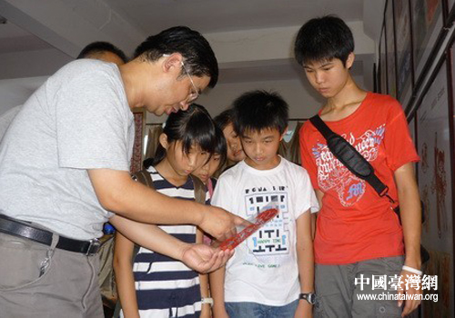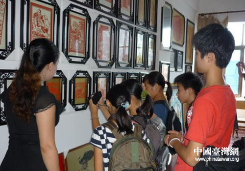 中國(guó)臺(tái)灣網(wǎng)7月29日孝感消息 日前,來自臺(tái)灣的五名小朋友到湖北孝感市雕花剪紙研究所參觀雕花剪紙工藝。臺(tái)灣小朋友們興致勃勃的參觀了剪紙工藝品展覽,對(duì)中華民間藝術(shù)的博大精深無比贊嘆。