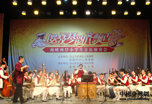 7日晚,基隆信義小學與定海海山小學在舟山劇院隆重舉行了“海峽兩岸小學生音樂演奏會”,舟山市政協副主席張昌義觀看了演出。音樂演奏會上兩地小學生以弘揚中國傳統文化為基調,以兩岸學生互信互愛為主旋律,分別演奏了《臺灣民謠組曲》、《紅旗頌》等兩岸風格各異的著名曲目,博得滿場觀眾陣陣喝彩,最后兩岸小學生一首大合唱《友誼地久天長》更是把演奏會推向了高潮。