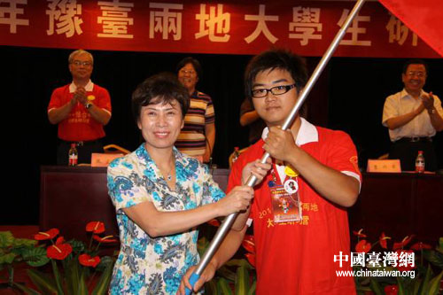 7月15日,由河南省臺辦、省臺聯主辦,以“走進天地之中、探尋‘四大古都’”為主題的2011年豫臺兩地大學生研習營在鄭州舉行開營儀式。河南省臺辦主任宋麗萍宣布“2011年豫臺兩地大學生研習營正式開營”并向營員授營旗。來自臺灣長榮大學、嘉義大學和華北水利水電學院的師生百余人參加開營儀式。