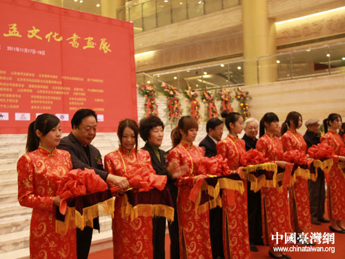 中國臺灣網11月18日濟南消息 海峽兩岸孔孟文化書畫展11月17日上午在山東博物館開幕。山東省政協副主席、黨組副書記喬延春,省政協副主席栗甲,省臺辦副巡視員莊衛平,臺灣中華書院院長李奇茂,著名書畫大師孫大石等出席開幕式。