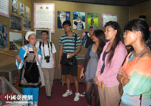 中國臺灣網7月19日三都消息 日前,2012年臺灣青年千人夏令營貴州分營踏上三都水族自治縣。走進水族民族博物館領略神秘的水族文化。三都是全國唯一的水族自治縣,水族人口占全縣人口的80%,水族有自己的文字和語言。