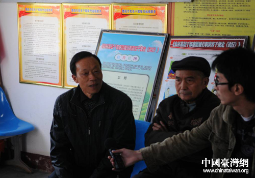《兩岸愛心地圖》采訪組在德陽市中江縣光明村采訪村民。(圖片來源:四川省臺辦)