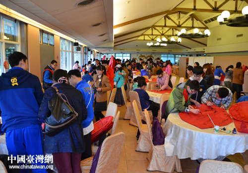 中國臺灣網2月22日桃園消息 2月20日,第五屆中華文化快車暨第二屆兩岸同心探索營在桃園閉營。在為期兩天的時間里,京臺兩地180余名同學分成AB兩組冒雨體驗了雙索行進、三索行進、垂降、攀巖、定靶射擊等項目的拓展訓練,達到了磨練意志、錘煉作風、加深了解、增強友誼的目的。