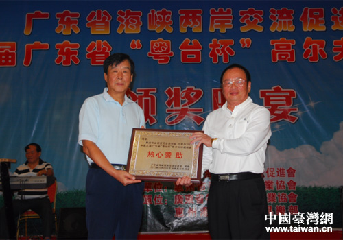 中國臺灣網10月31日惠州消息 日前,第九屆廣東省“粵臺杯”高爾夫球邀請賽在惠州湯泉高爾夫球會成功舉行。當晚,在景億宴會廳舉行了隆重的頒獎晚宴。廣東省臺辦副主任、促進會常務副會長陳林佐,促進會常務副會長陳連從、促進會副會長白瑞秋、梁茂忠、李建興,惠州市人民政府副市長王勝,惠州市委副秘書長、惠州市臺辦主任廖巍,惠州市人民政府副秘書長周海英等出席活動。來自全省各地130多位嘉賓及臺商參加此次盛會。