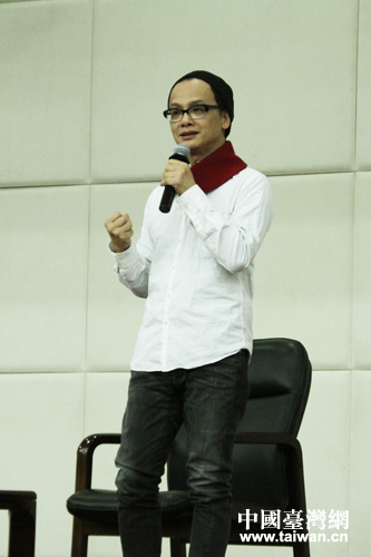 中國臺灣網11月8日北京消息 很少有人如此完整地經歷代表一個音樂的時代,每一個對華語流行音樂略有耳聞的人可能都曾聆聽過他的作品!遏敱ā贰段以敢狻贰段兜馈贰吨辽龠有你》《電臺情歌》……他的歌不但成就了一大批被流行樂壇銘記的歌手,還伴隨了一代人的成長。他就是縱橫華語樂壇30年的臺灣著名作詞人、制作人、音樂經理人——姚謙。7日晚,姚謙“私人品味——往返于北京臺北”的演講在北京對外經貿大學舉行,姚謙向北京學子解讀了他關于音樂、閱讀、旅行、愛情的“私人品味”。
