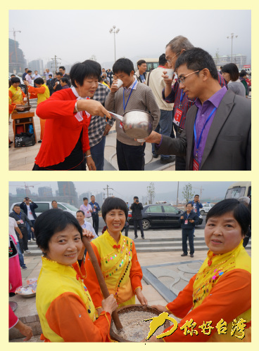 圖二:兩岸嘉賓現(xiàn)場(chǎng)擂擂茶、品擂茶、話(huà)擂茶