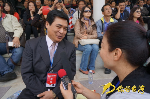 圖三:記者采訪海峽兩岸中小企業(yè)聯(lián)合促進(jìn)會(huì)總會(huì)副秘書(shū)長(zhǎng)劉冠雄。