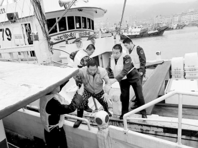 9時30分許,經(jīng)過一個多小時的救援,在兩岸搜救力量的共同努力下,遇險漁船險情被成功排除,漁船及船上人員全部平安返航(右圖)。“我們都是一家人,大陸鄉(xiāng)親海上有難,我們義不容辭,都會過去幫忙。”臺輪“順利泰”號船員陳相萬說。