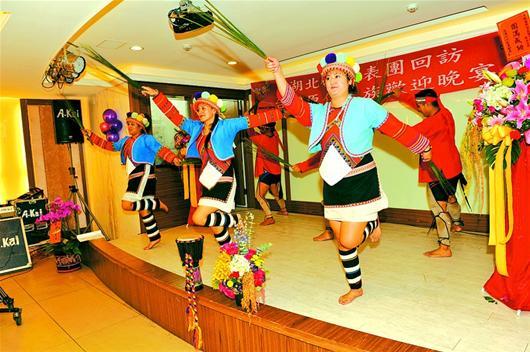 上圖:臺灣少數(shù)民族同胞載歌載舞,歡迎遠(yuǎn)道而來的湖北朋友。