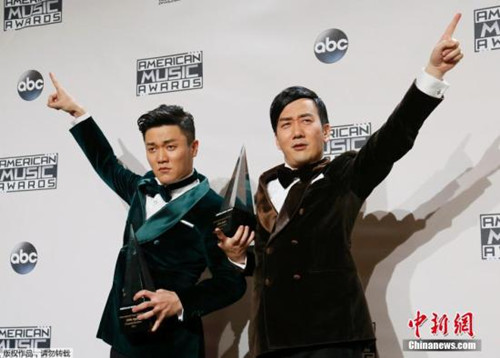 大陸流行音樂組合“筷子兄弟”憑借一首《小蘋果》迅速走紅,17日《小蘋果》USB數字化專輯在臺北發布,一成的銷售額將捐給臺灣“中華育幼機構兒童關懷協會”。