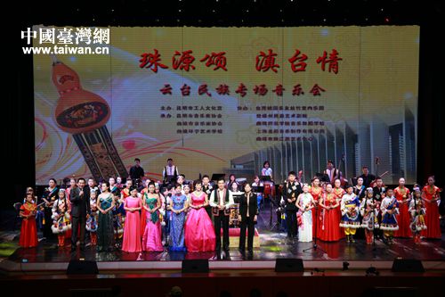 中國臺灣網(wǎng)9月8日昆明訊 9月6日晚,由昆明市臺辦支持,昆明市工人文化宮主辦,昆明市音樂家協(xié)會、曲靖市音樂家協(xié)會、曲靖環(huán)宇藝術(shù)學(xué)校承辦,臺灣桃園樂友絲竹室內(nèi)樂團(tuán)、楚雄州民族藝術(shù)劇院等多家單位聯(lián)合協(xié)辦的“珠源頌·滇臺情”專場音樂會在昆明市工人文化宮職工劇場隆重上演。來自臺灣寶島的桃園樂友絲竹室內(nèi)樂團(tuán)與云南本土民族樂團(tuán)——曲靖環(huán)宇藝術(shù)學(xué)校葫蘆絲樂團(tuán)同臺演出,讓觀眾切身感受到了民族樂器的魅力,親身感受到云臺兩地民樂合奏的天籟之音。