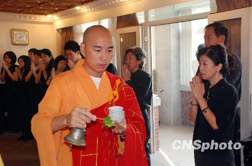 其大女兒莊乃瑞為父親魂歸故里祈禱。中新社發 傅丹丹 攝