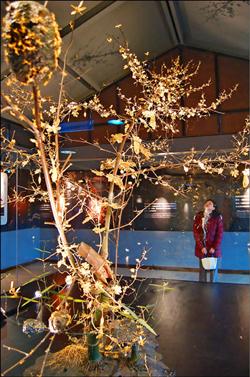 臺灣著名金雕藝術家吳卿,在傳藝中心舉辦“金色鄉情”金雕展,展出物以黃金為主體,搭配其他材料創作而成,作品做工精細,金光閃閃,平時難得一見。